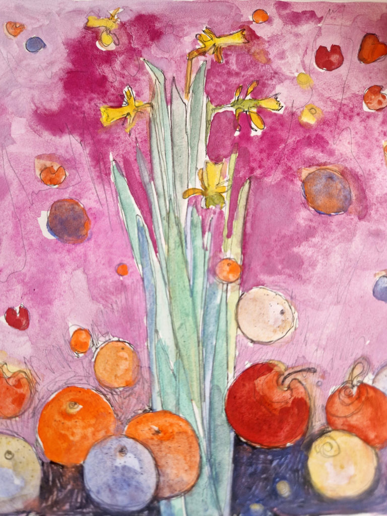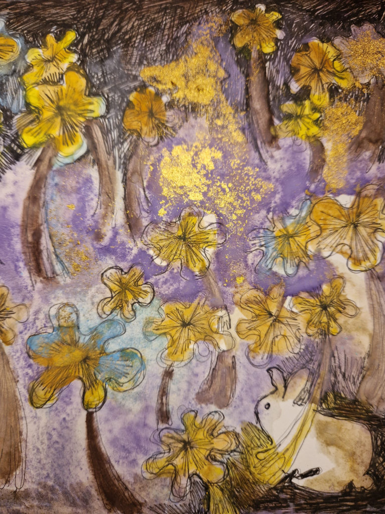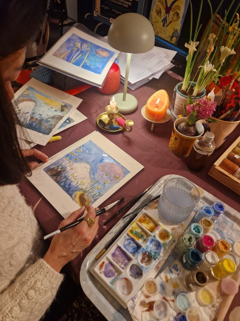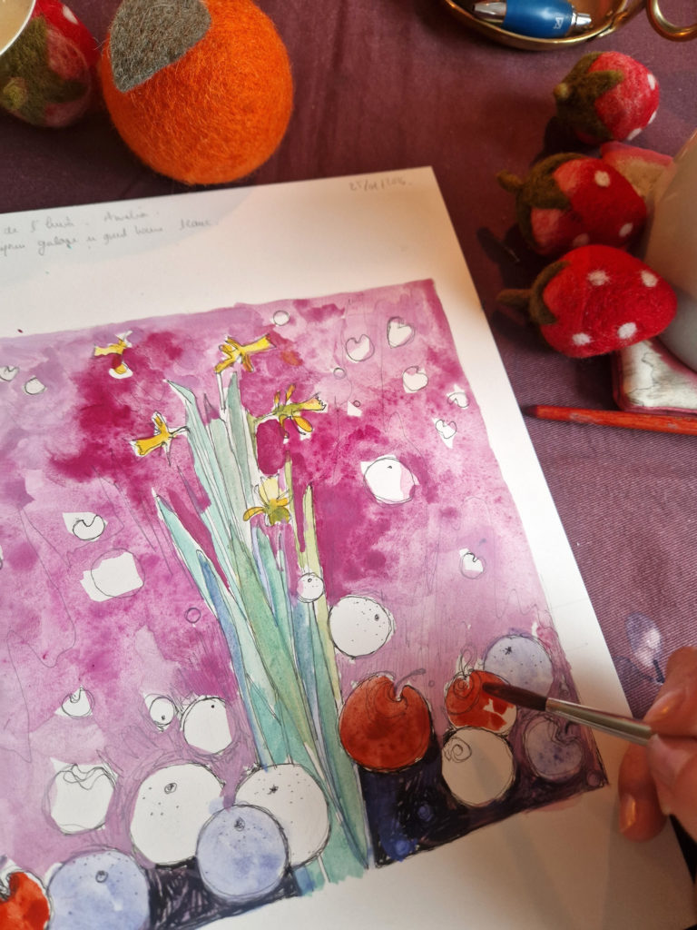 L’étang est gelé, gris, rose, parme, doré, de poudre argentée. Les canards ne changent rien à leur habitudes qui sont de dandiner et de suivre sans parler la marche hallucinante et lente d’un jour comme tous les autres. Nous observons la vaste étendue abandonnée à elle-même. Quelques roseaux se penchent avec nous sur la glace où nous posons un pied, puis un autre. Pas à pas, les enfants s’aventurent à marcher sur l’eau. Je les imagine dans un conte d’Andersen où ils patineraient sur l’eau d’une fontaine surmontée par d’incroyables quadrilles de chevaux encadrant le char de l’Aurore et où ils vendraient aussi des allumettes dans des habits élimés et sombres de déshérités. J’observe d’un œil Hansel et Gretel valsant avec les roseaux déliés et jouant de cannes et bâtons à poursuivre les pauvres poules d’eau récalcitrantes. Suivant mes pensées désenchaînées sur la glace ultime de la forêt de mes songes, je rêve à mon conte des mille et une nuits de l’hiver. Je vois ce même ciel immense et clair, un océan gelé à la surface du monde, et au beau milieu d’un silence éternel, un couple enlacé dans ses habits de fête.