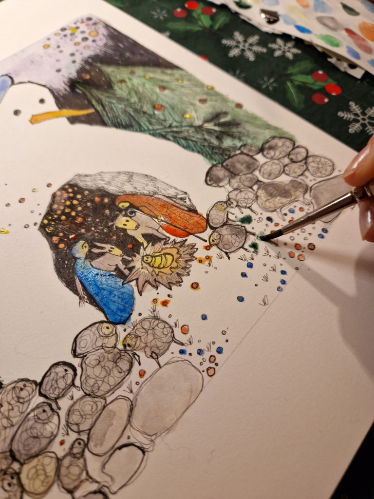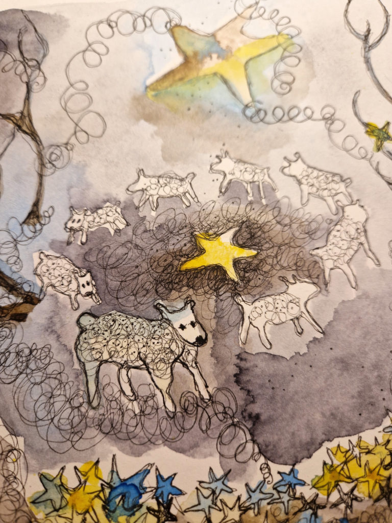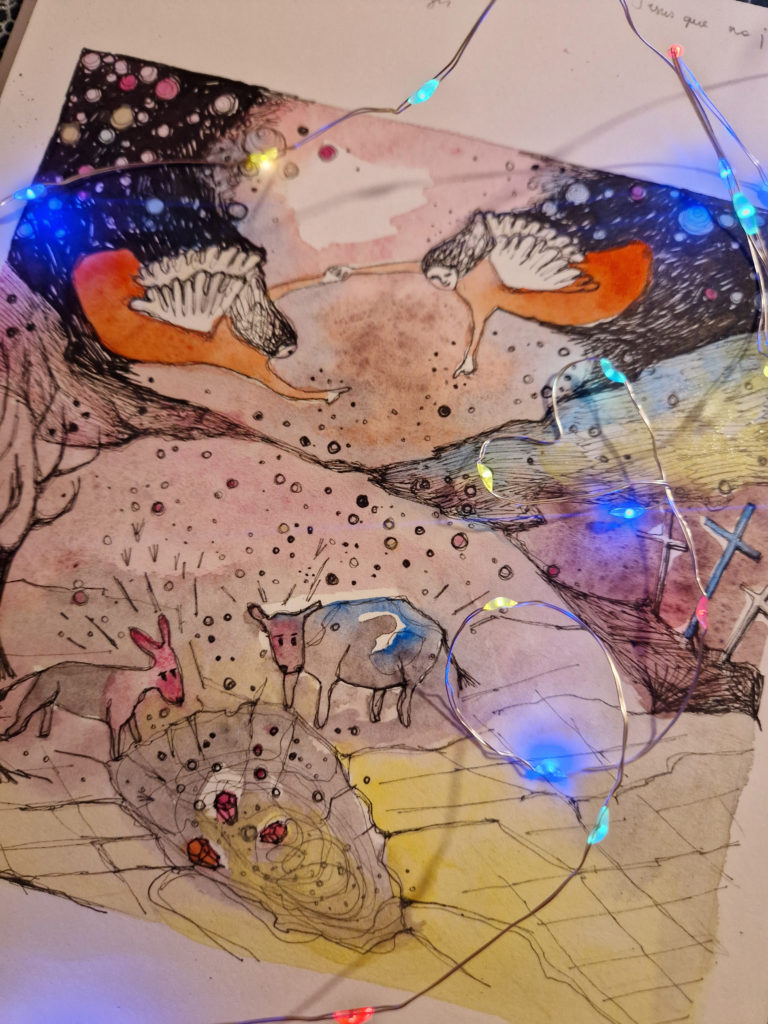 Nous marchons en rang sur le sentier immaculé. Il faut le silence pour entendre crisser la neige, nous, nos pas serrés. Nous sommes méticuleux en posant ici nos bottes, là nos lourds talons tels des sabots de bois ; un pied après l’autre à l’écoute du son de la terre qui cogne ce dimanche comme de la pierre.
