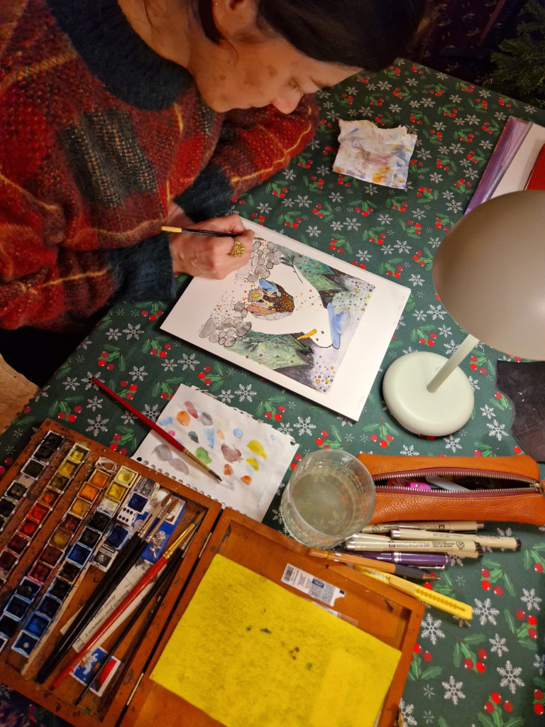 Quelque part sous l’épaisse couche gelée, je devine des fleurs avides du printemps et les champignons puinés de la saison passée. Des oiseaux sifflent dans l’air transparent où quelques figures de fumée s’amusent à nous effrayer. Les ombres des coureurs et sportifs nous dépassent à toute allure. On se demande ce qui les presse à détaler comme des lièvres dégagés de leur terrier, poussés par quelque nécessité à sortir ce matin de froid. Le terrier n’a-t-il donc pas de cheminée où s’aimer ? Nous voilà, nous, délicieusement assiégés et comblés par le calme de la forêt, foyer embarqué, flammes vives aux aguets, hypnotisés par notre allure de cavaliers au pas sur la route qui craque sa chanson de l’année nouvelle.