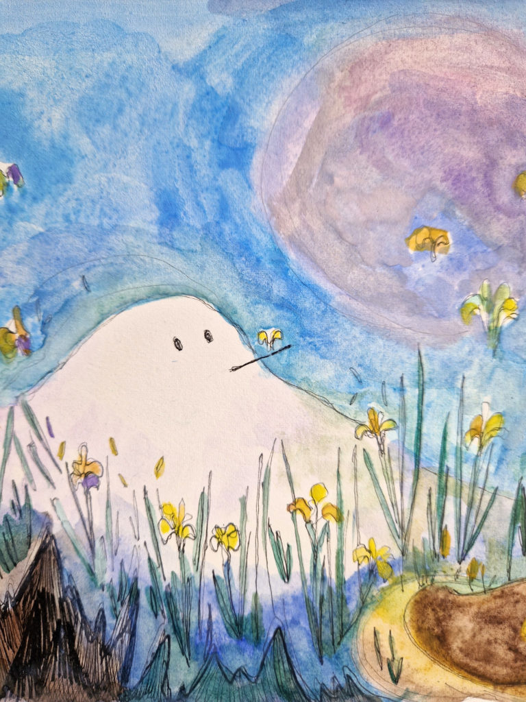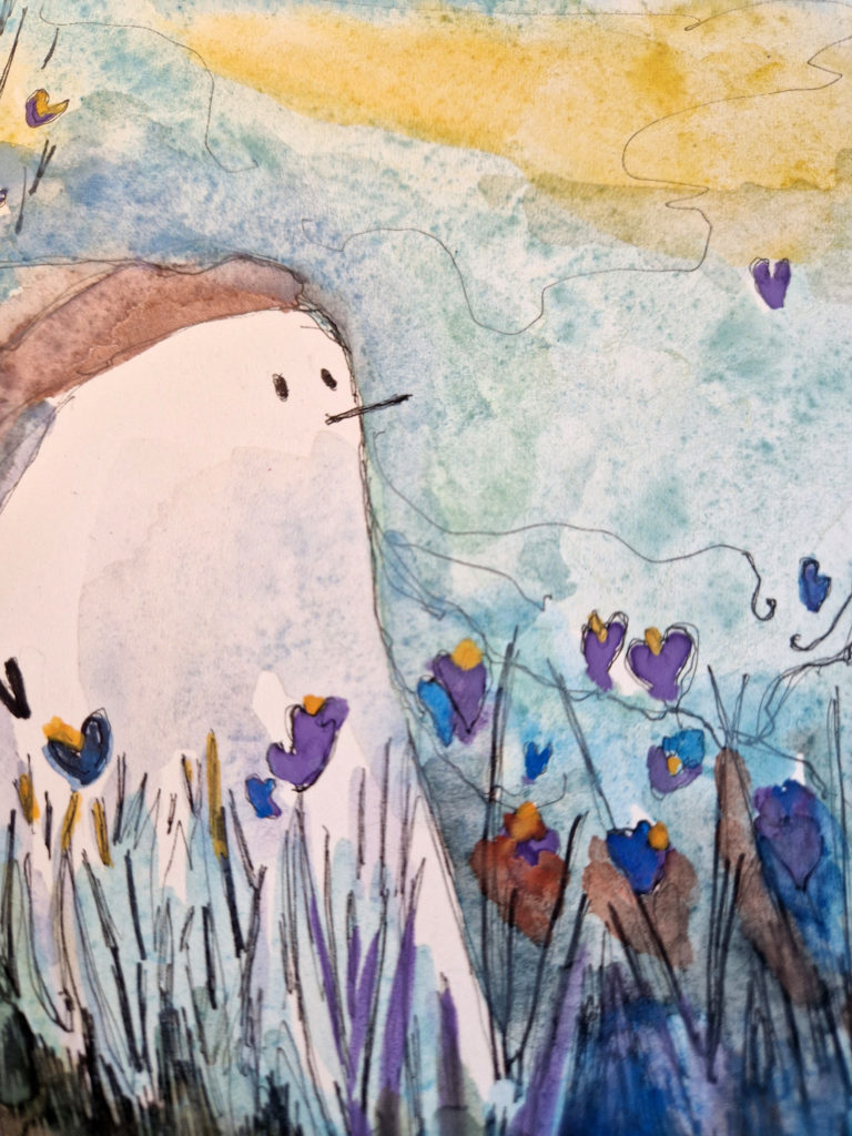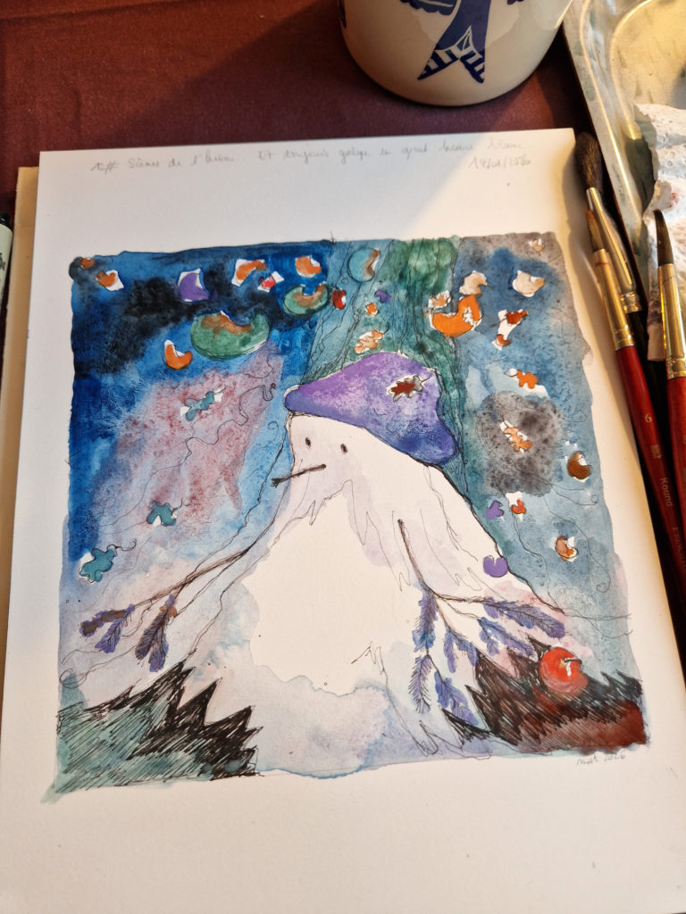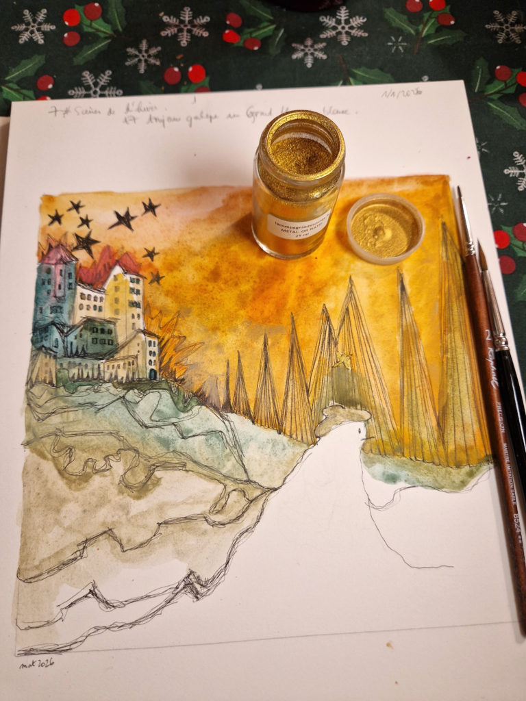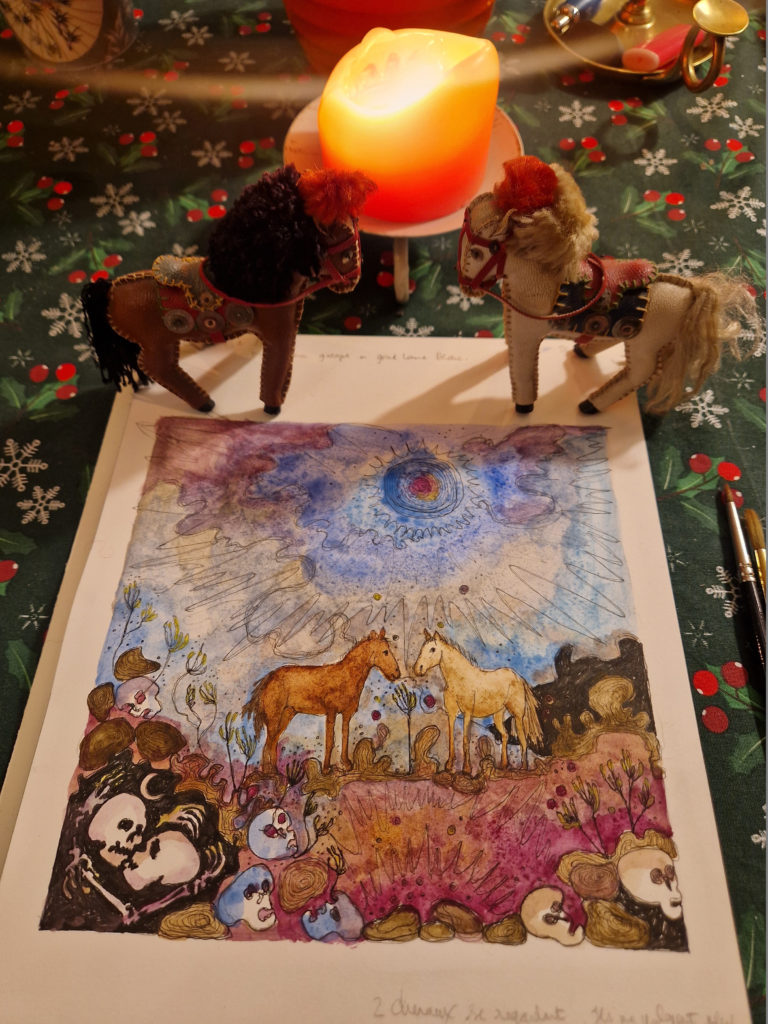 Que dire de cet hiver qui emboîte le pas à l’été sans même que l’automne ne se soit interposé ? Impossible de se trouver là, impensable d’être ailleurs. Alors, on y est, trempé par la pluie et l’eau du lac qui s’est jeté à nos pieds alors qu’on regardait les canards en duo passer. Le temps s’est aplani dans une pause d’éternité ; le ciel amorce des vagues d’océan, les champs sont noirs de labeur et les sommets se glacent devant le monde engourdi de froid. Mais au loin, invisible, arpentant le paysage unanime, on dirait que toujours galope un Grand Homme Blanc. Suivons sa trace à grandes enjambées. Enfourchons le Cheval de feu qui vient.